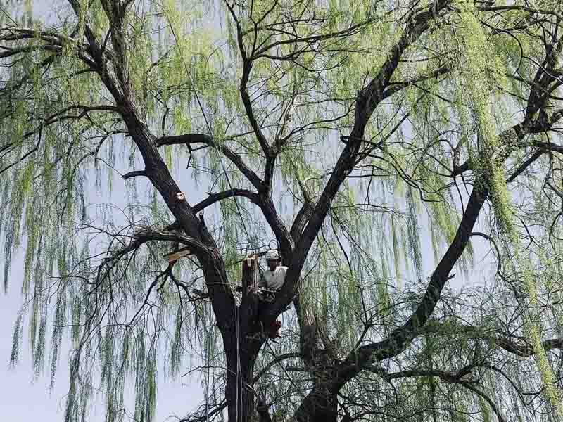 A. ほとんどの樹木に対応可能ですが、枯れ木や腐朽が進んだ木など「登ると危険」なケースでは別の手法を用います。