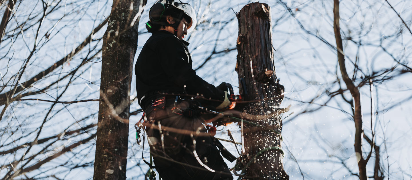 A. ほとんどの樹木に対応可能ですが、枯れ木や腐朽が進んだ木など「登ると危険」なケースでは別の手法を用います。