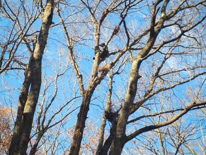 70年以上はありそうな幹もしっかりした20m超えの大きな木。根元に近い場所から株立ちしているため、上の方では木の間の移動だけでも一苦労です。
