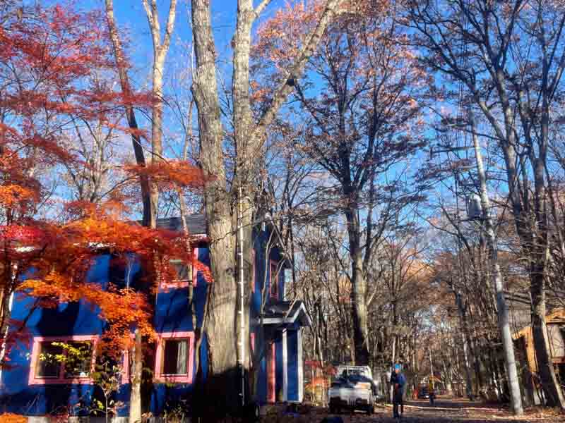 危ないから切ってしまうのは簡単ですが、木との上手な付き合い方をここの別荘地の方々は心得ているようでこちらも背中がピンとなりました。