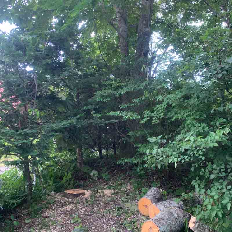 お客様はお庭の木は出来るだけ残したいというご要望でしたが、全体的に育ってきたため、枝払いや弱ってしまっている木を切ることで残りの木々に光があたり、また風通しのいいお庭を維持できますよ。